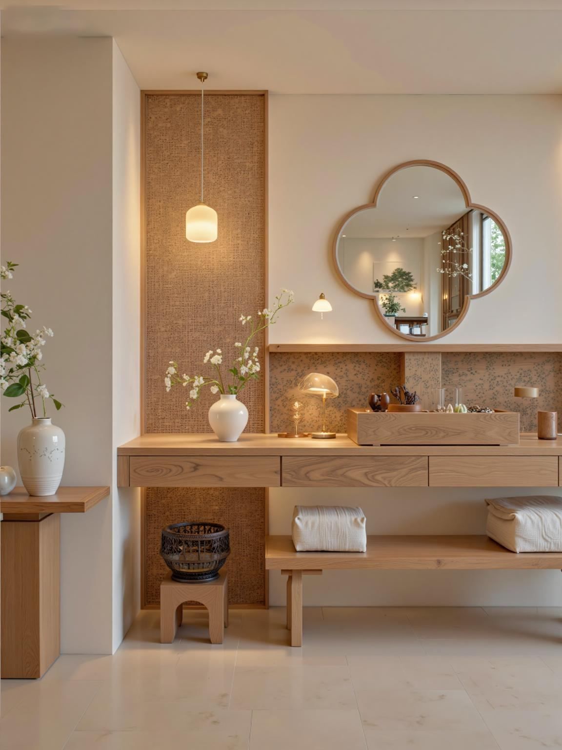 6. Góc Trang Điểm Wabi Sabi – Dịu Dàng, Tinh Tế, Gọn Gàng
