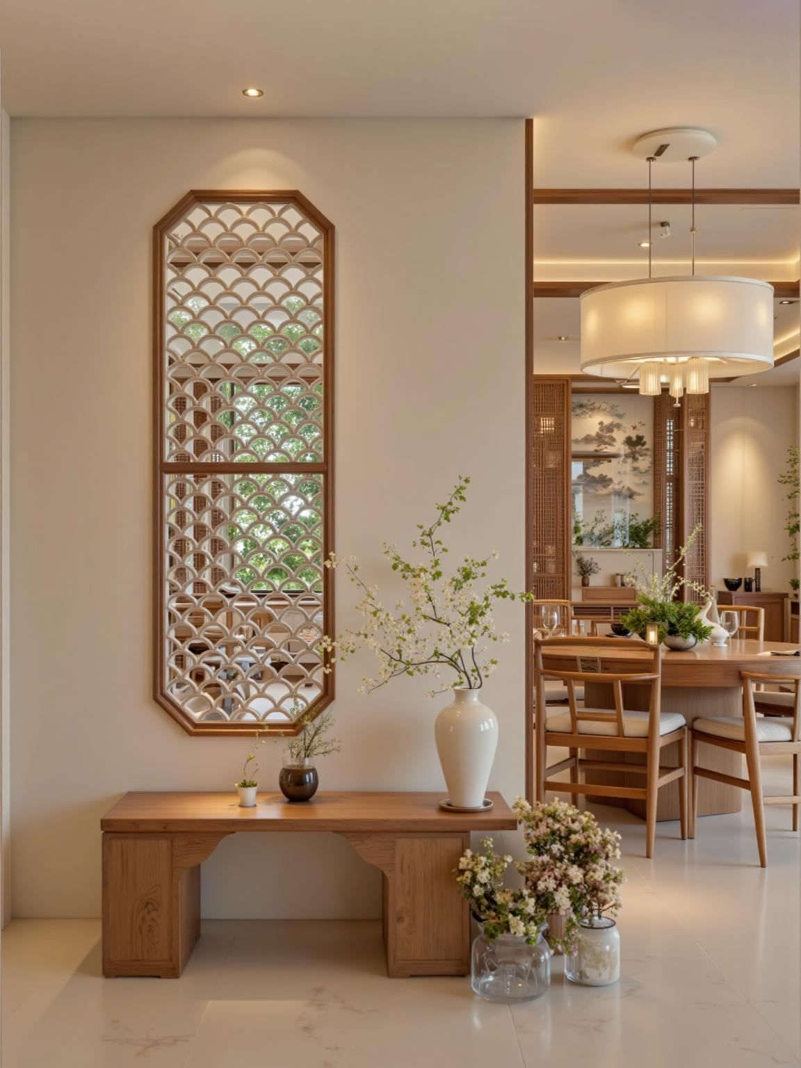Khám phá thiết kế nội thất Wabi Sabi hiện đại và tối giản, hài hòa tự nhiên với phòng khách, phòng ngủ, góc trang điểm và khu thay giày đầy tinh tế.