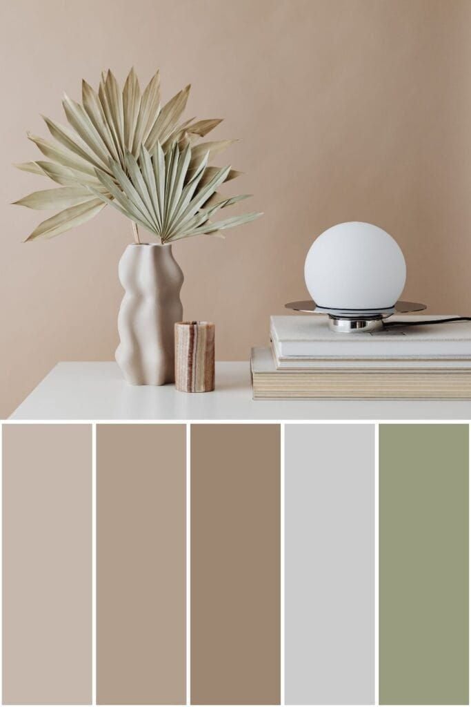 Các gam màu thường gặp: be, nâu đất, xám tro, xanh lá nhạt, trắng kem.