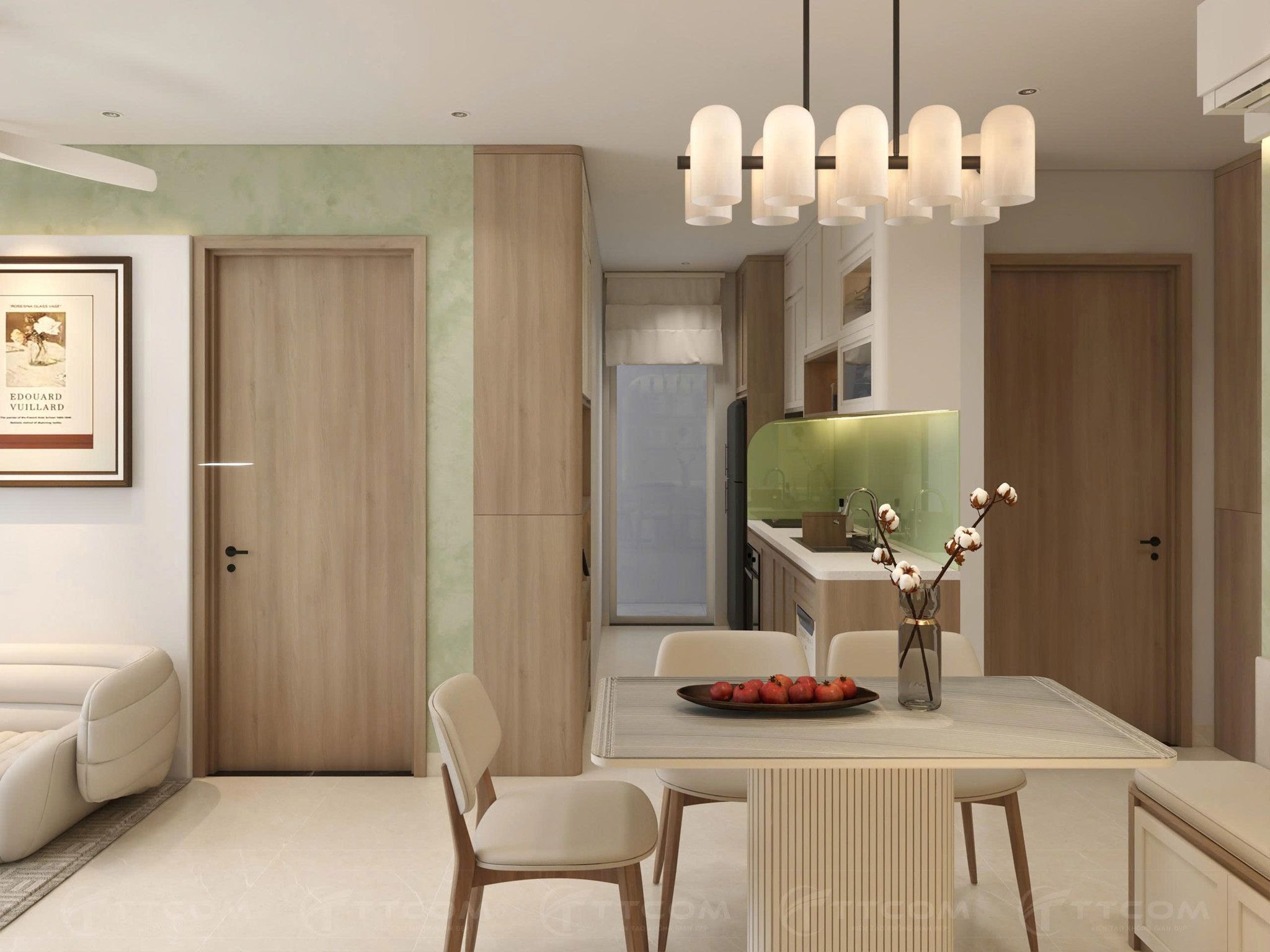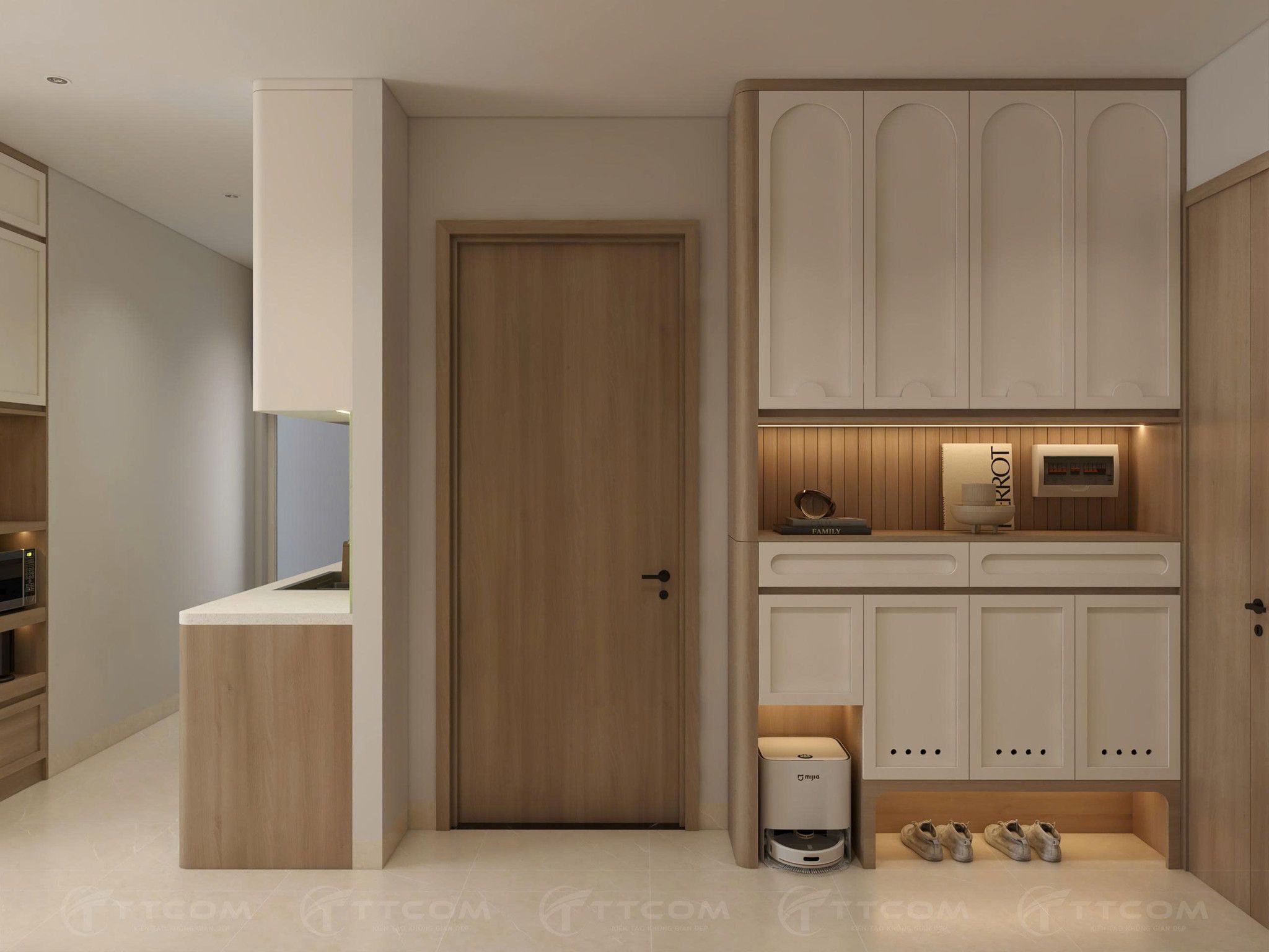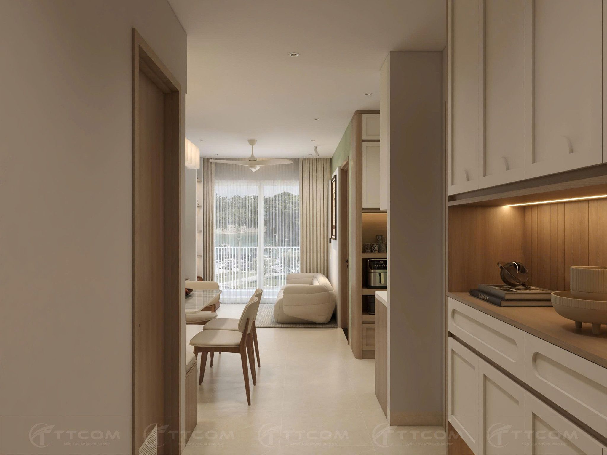 Thiết kế căn hộ 2 phòng ngủ phong cách Wabi-sabi mang đến sự cân bằng giữa thẩm mỹ tinh giản và công năng tiện nghi. TTCOM GROUP đã khéo léo kết hợp không gian sống hiện đại với triết lý “đẹp trong sự giản dị”, tạo nên tổ ấm an yên cho gia chủ.