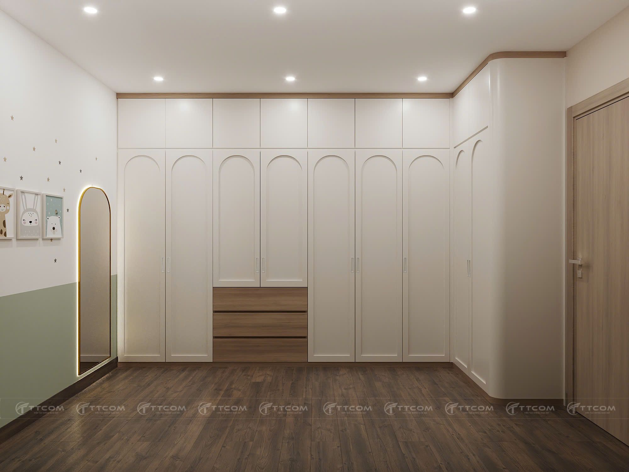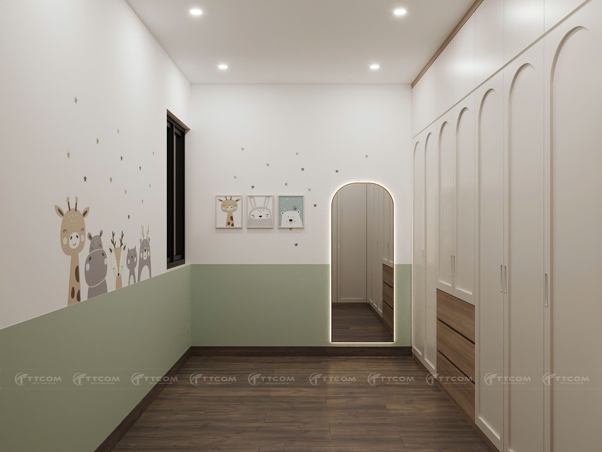 2. Phòng thay đồ kết hợp phòng bé – Tiện nghi và sáng tạo