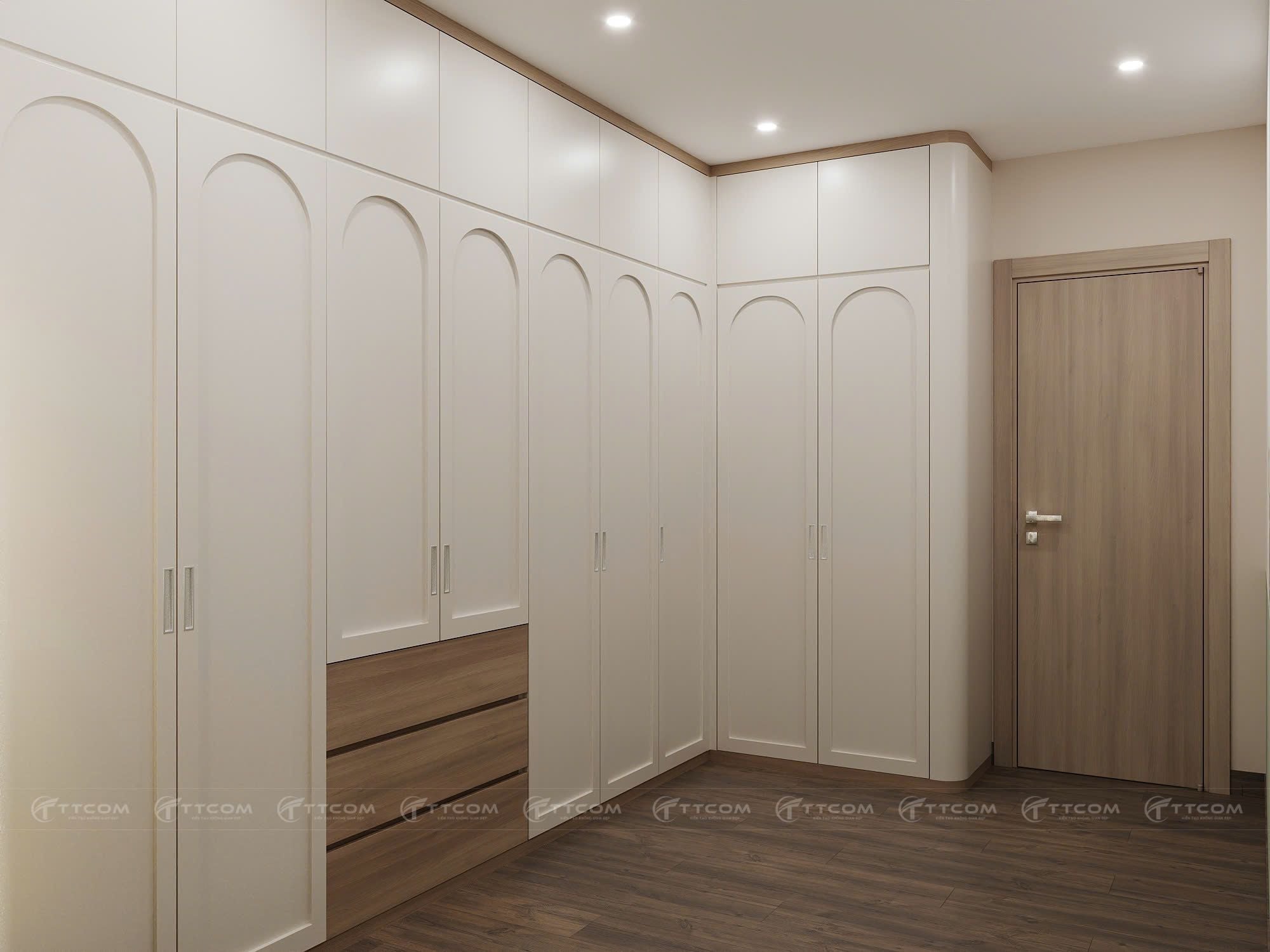 Hệ tủ quần áo kịch trần tối ưu diện tích lưu trữ.