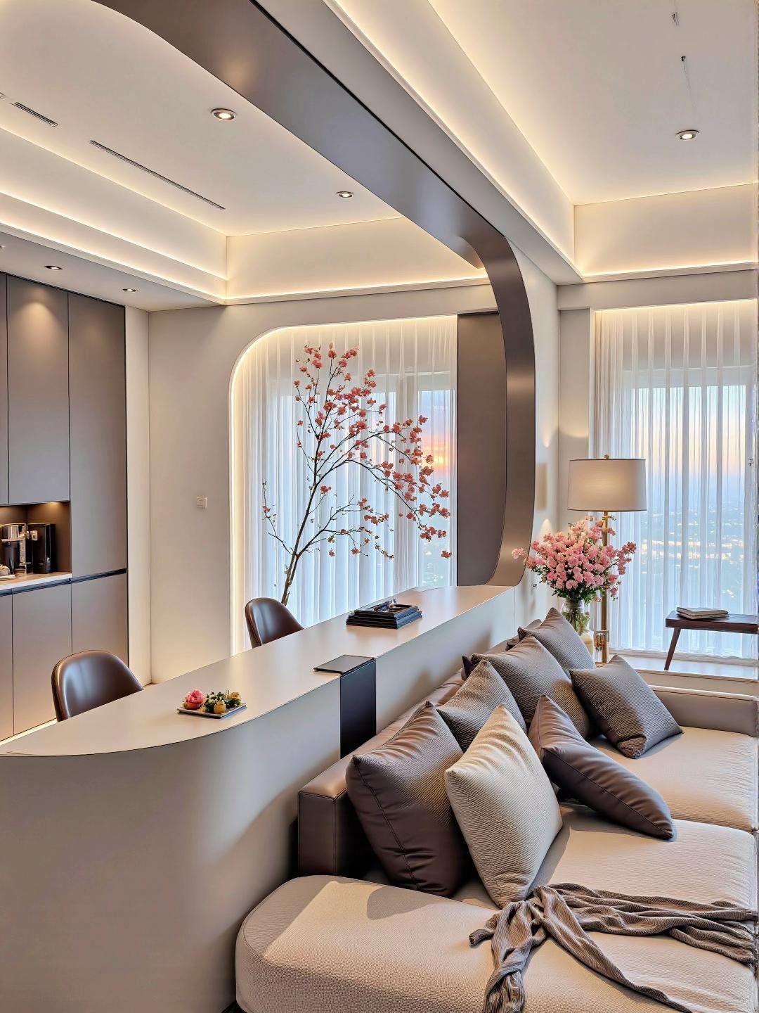 Sử dụng ánh sáng gián tiếp: đèn hắt trần và đèn tường giúp tạo chiều sâu.