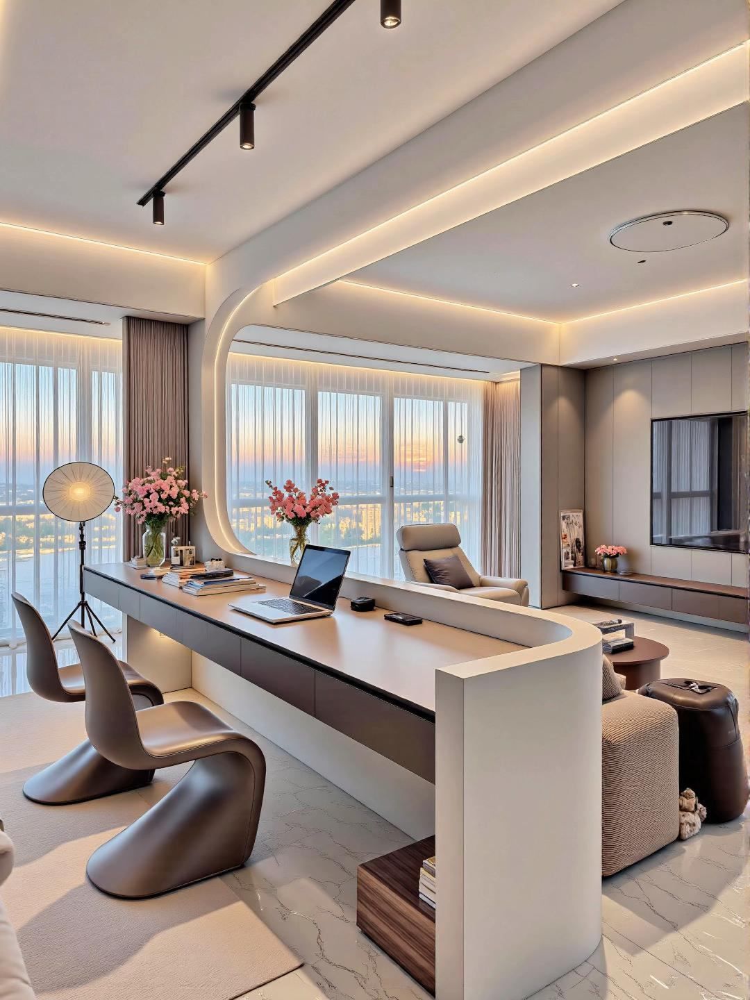 Thiết kế phòng khách liền khu làm việc không chỉ giúp tối ưu diện tích mà còn thể hiện phong cách sống hiện đại, linh hoạt. Căn hộ này là minh chứng cho việc sự tối giản không đồng nghĩa với đơn điệu, mà ngược lại chính sự tiết chế đã tạo nên đẳng cấp và sự tinh tế trong từng chi tiết.