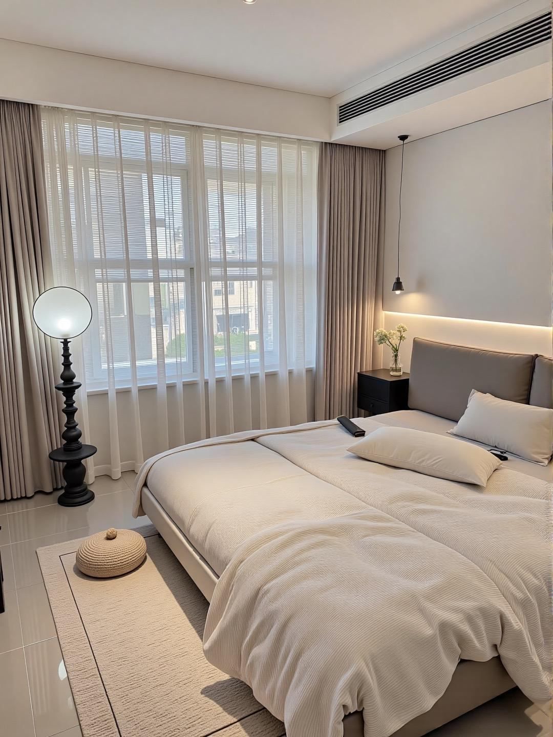 Rèm 2 lớp vừa đón nắng ban ngày, vừa đảm bảo riêng tư tối đa.