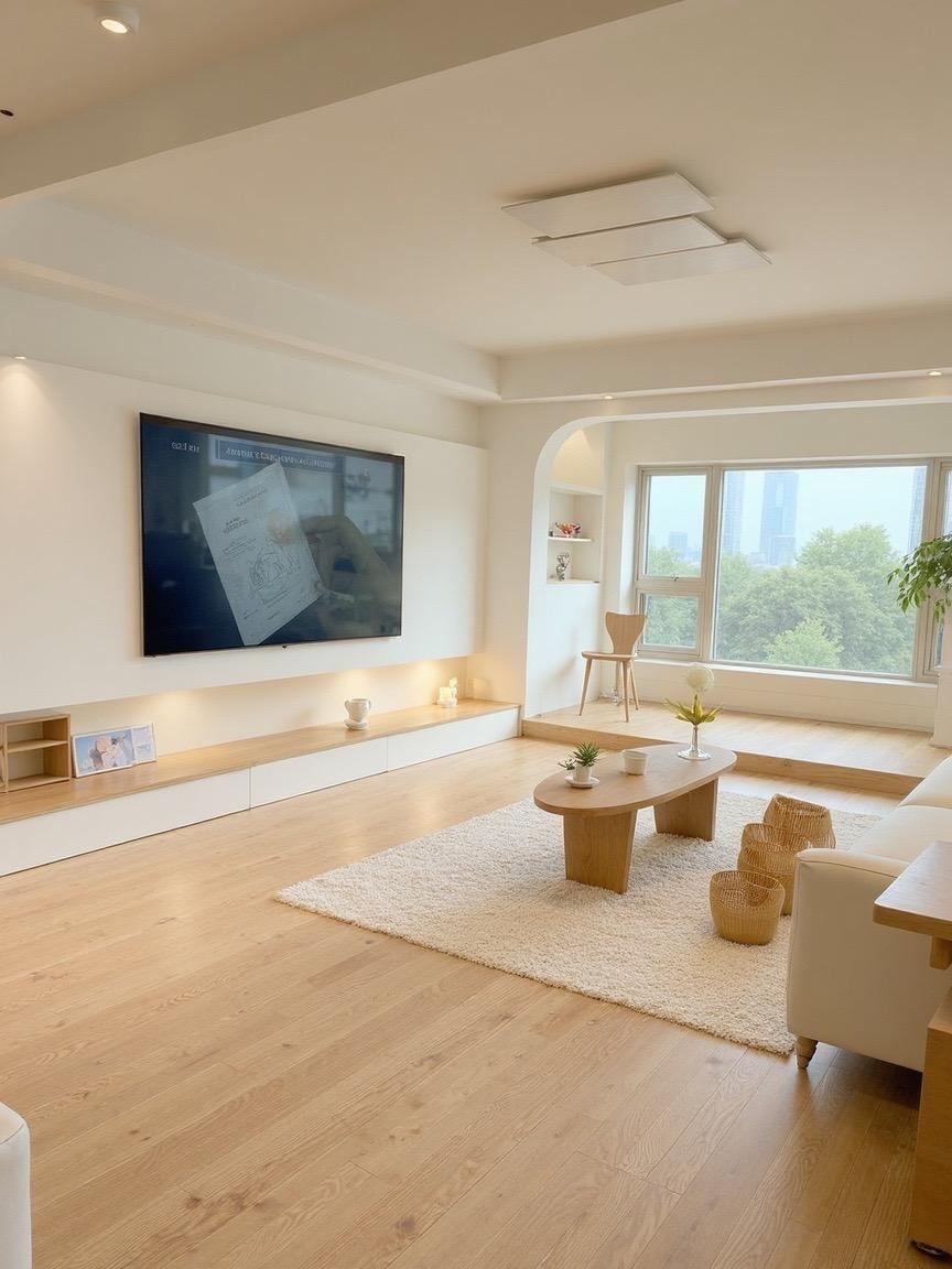 Gam màu chủ đạo của căn hộ là trắng, be và gỗ sáng, mang lại cảm giác ấm áp và cân bằng.