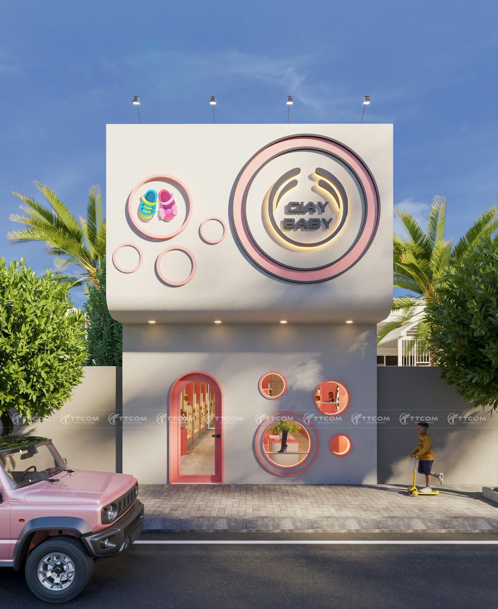 2. Thiết kế mặt tiền cửa hàng giày trẻ em