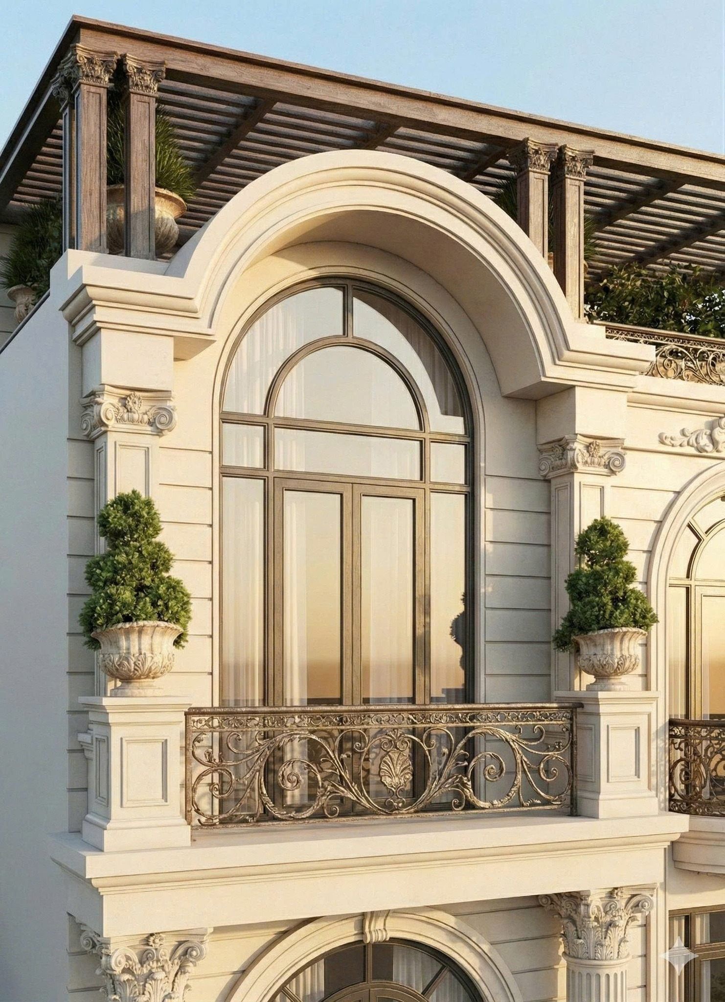 Hệ vòm cong mềm mại kết hợp ban công sắt mỹ thuật tinh xảo